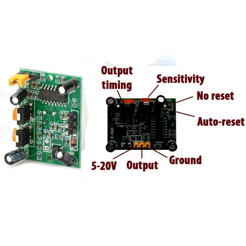 این ماژول برای تشخیص حرکت بکار می رود و یکی از ماژول های پر کاربرد بازار می باشد خروجی آن 5 ولت بوده ، دو پتانسیومتر برای تنظیم حساسیت تشخیص حرکت و مدت زمان آپ بودن پایه خروجی بعد از تشخیص حرکت می باشد از کاربردهای این ماژول تشخیص حرکت استفاده در دزدگیرها ، شمارنده ها ، چراغ های هوشمند ، اماکن ، درهای اتومات و ... می توان نام برد برای راه اندازی مصرف کننده می توان از رله استفاده کرد و خروجی رله را به مصرف کننده وصل کرد ولتاژ ورودی ماژول تشخیص حرکت می تواند از 5 ولت تا 12 ولت باشد درجه حرارت کارکرد این ماژول می تواند بین منفی 20 درجه تا مثبت 70 درجه سانتیگراد باشد دورترین فاصله تشخیص این ماژول حرکت 6 متر می باشد و از مزیت های آن راه اندازی ساده ، مصرف کم برق ، کوچک بودن ، قابلیت تنظیم داشتن ، محدوده ولتاژ ورودی زیاد و ... می باشد.